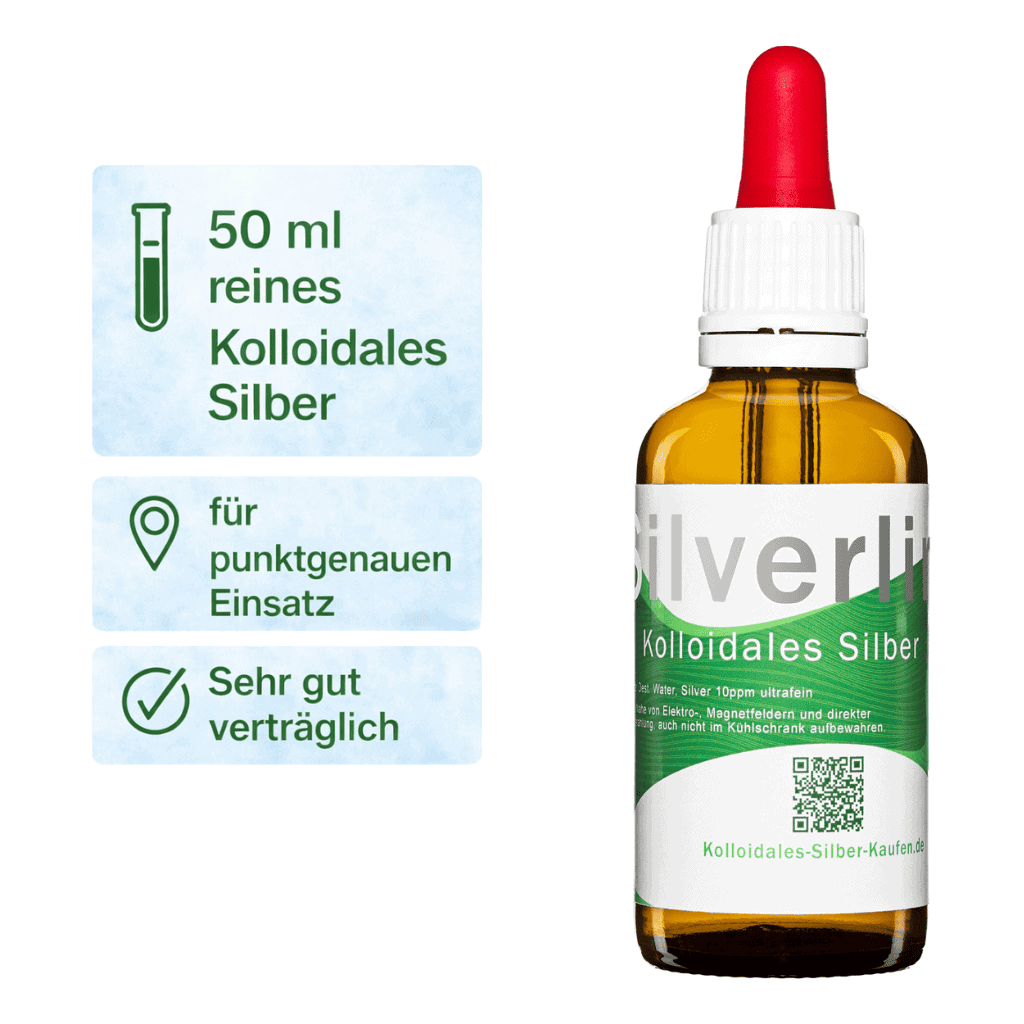 Kolloidales Silber ist kein Arzneimittel. Eine medizinische Wirksamkeit zur Heilung, Linderung oder Vorbeugung von Krankheiten ist wissenschaftlich nicht belegt. Die Anwendung erfolgt in eigener Verantwortung. Bei gesundheitlichen Beschwerden sollte stets ein approbierter Arzt konsultiert werden.